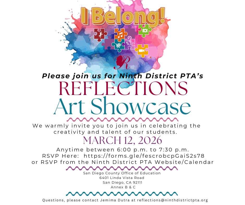 Questions? Contact Jemima Dutra, Ninth District PTA Reflections Chairperson, reflections@ninthdistrictpta.org