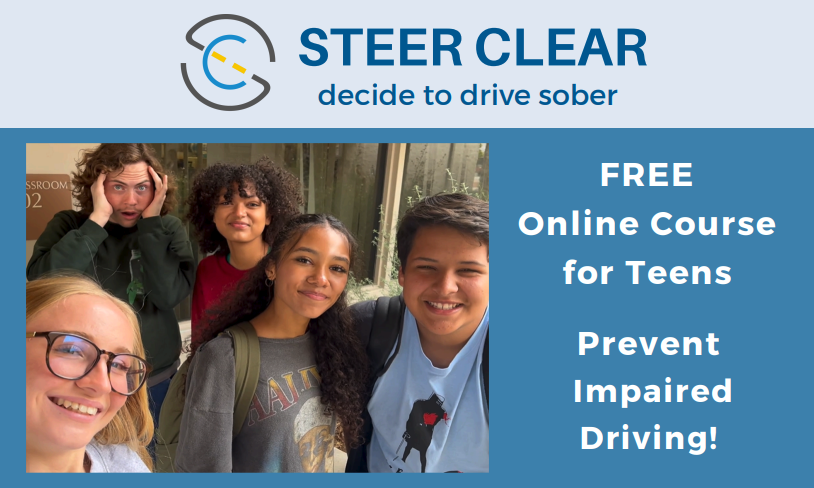 “Steer Clear – Decide to Drive Sober” is a free course dedicated to addressing this issue. Taught by peers, this 30-minute online class provides teens with valuable insights into how alcohol and cannabis affect driving ability. It can be used as an in-class activity, homework or extra credit, or a requirement to get an on-campus parking permit.